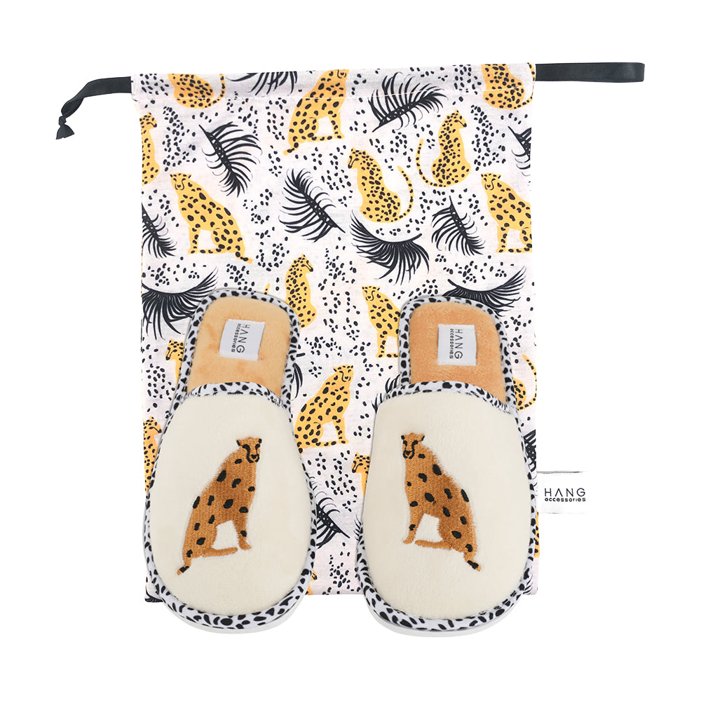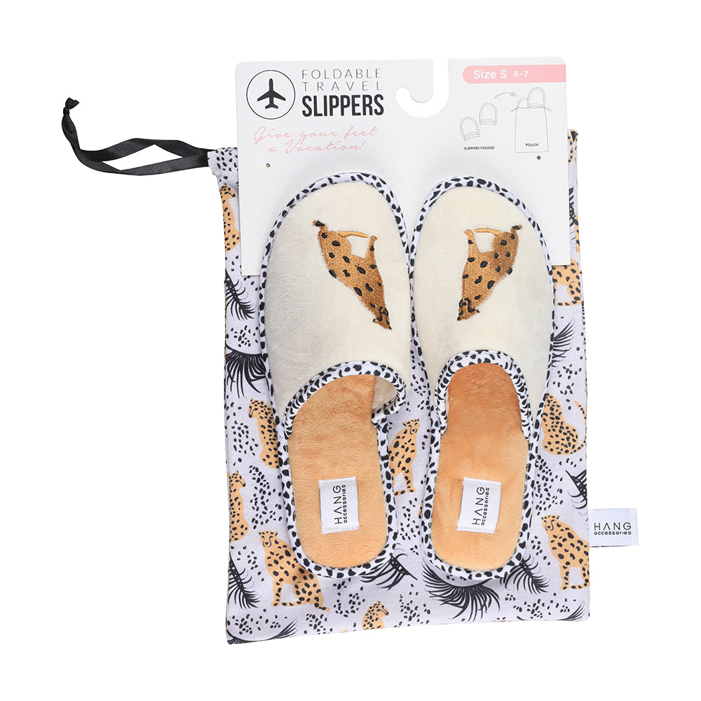 Keep your feet comfy & cute with the Foldable Travel Slippers & Coordinating Bag Set! These easy to slip on and super soft slippers with a snug foam footbed will be the first thing you grab after a long day. The foldable sole allows you to tuck the slippers into the coordinating drawstring bag so you can pack for your travels and keep away hotel room and vacation rental germs!
