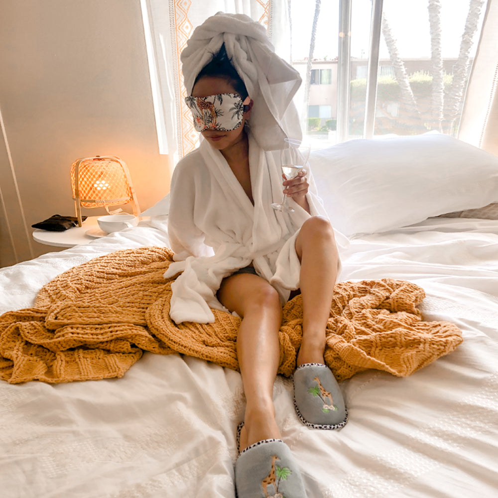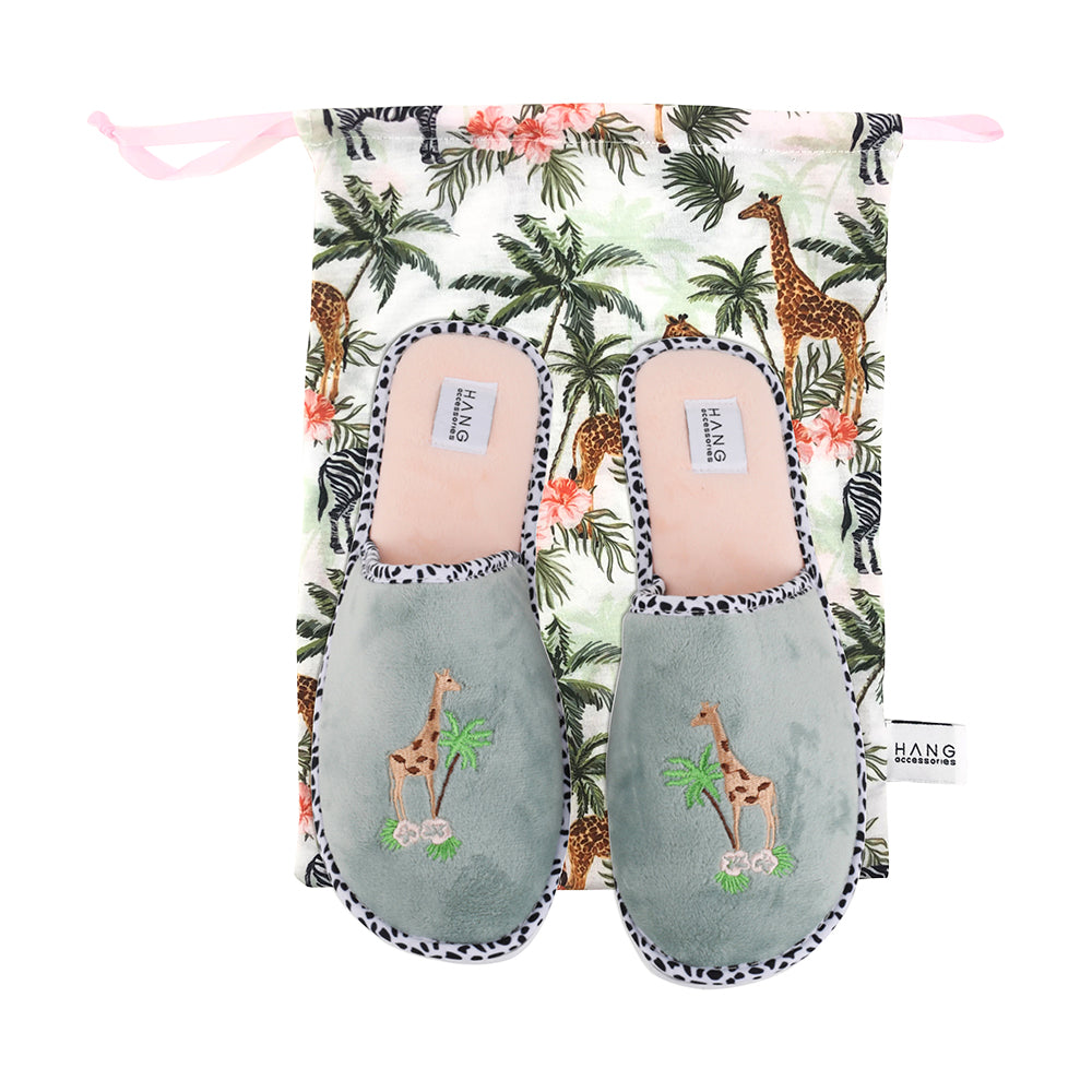Keep your feet comfy & cute with the Foldable Travel Slippers & Coordinating Bag Set! These easy to slip on and super soft slippers with a snug foam footbed will be the first thing you grab after a long day. The foldable sole allows you to tuck the slippers into the coordinating drawstring bag so you can pack for your travels and keep away hotel room and vacation rental germs!