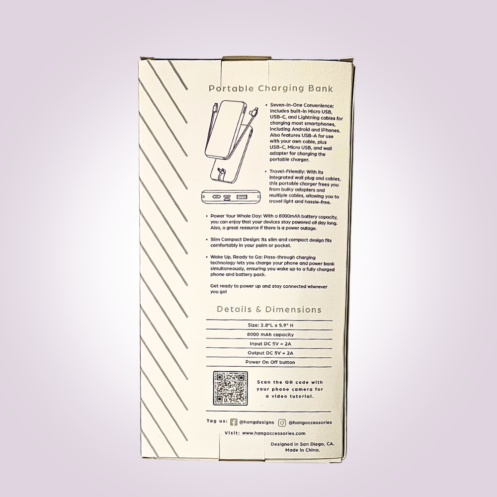 - Travel-Friendly: With its integrated charging cables and wall plug, this portable charger frees you from bulky adapters and wires, allowing you to travel light and hassle-free.
