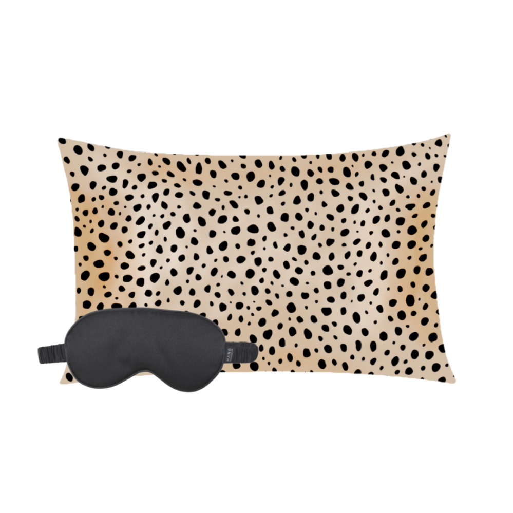 Cheetah Spot Pillowcase + Black Eye Mask Set