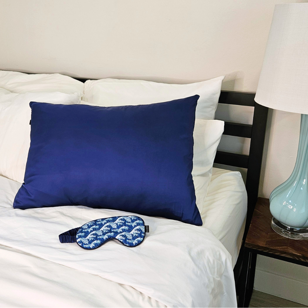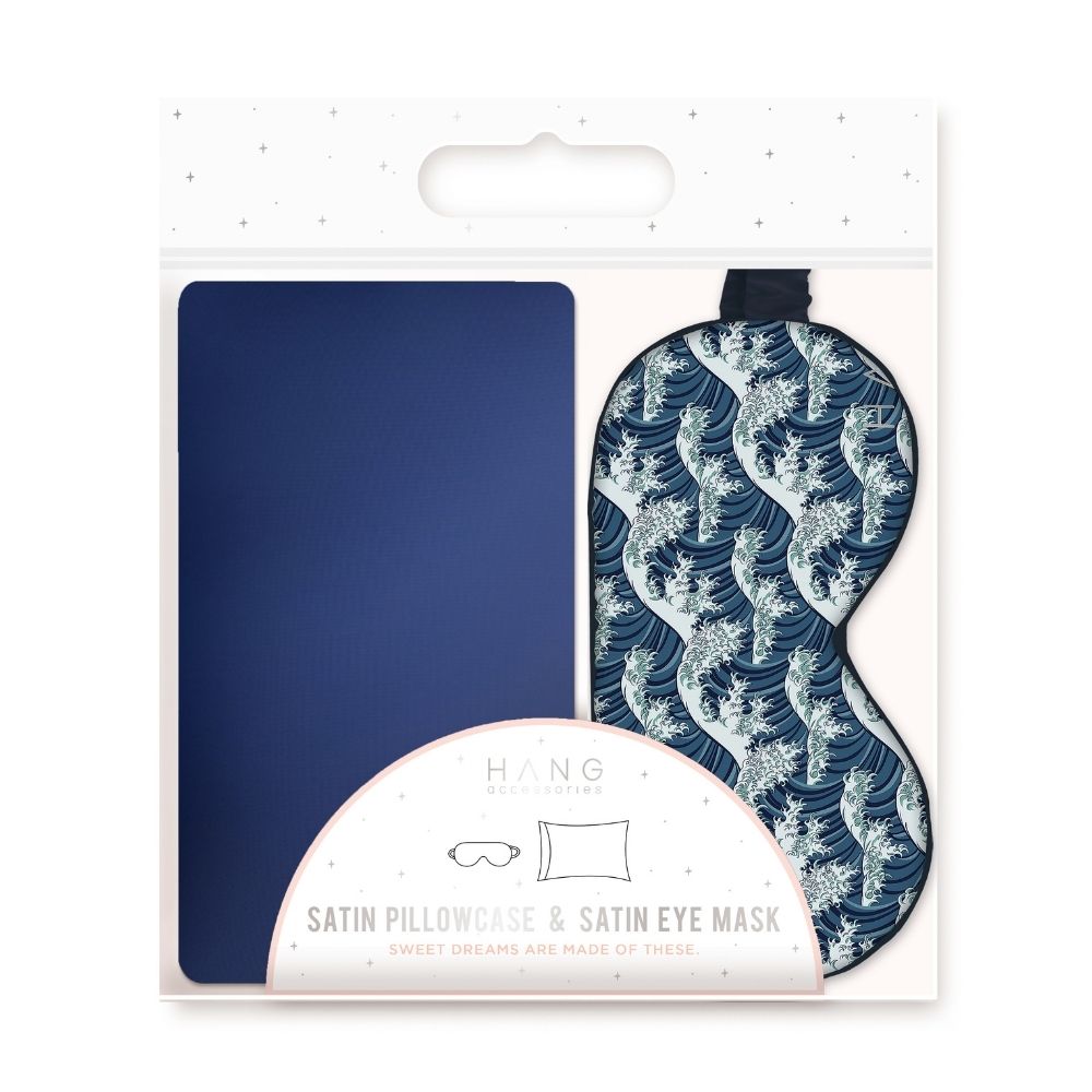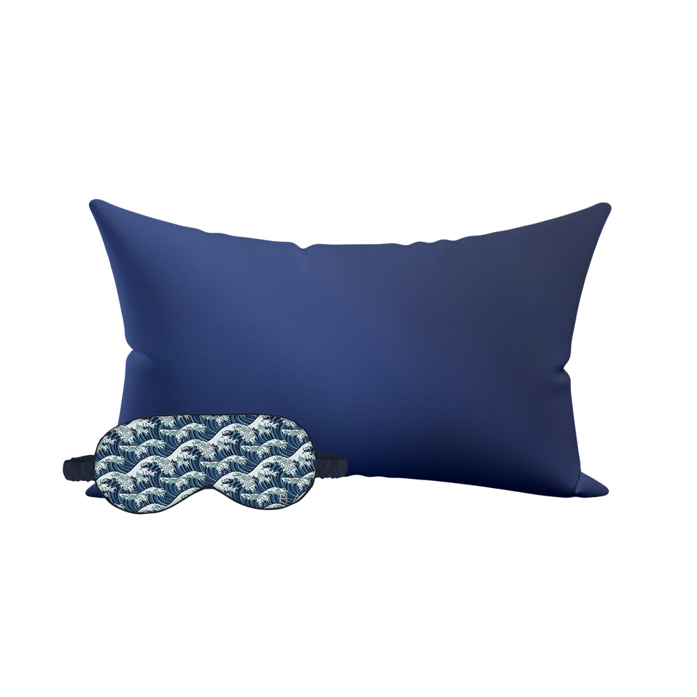 Navy Blue Pillowcase + The Great Wave Eye Mask Set