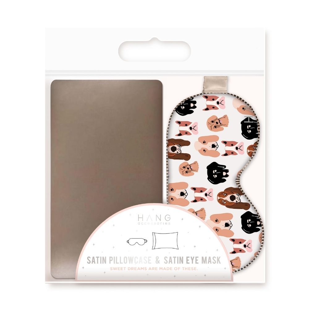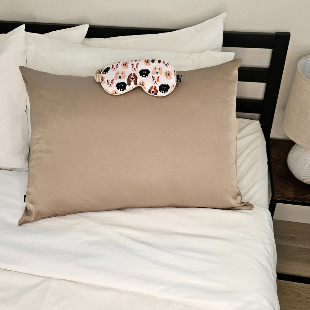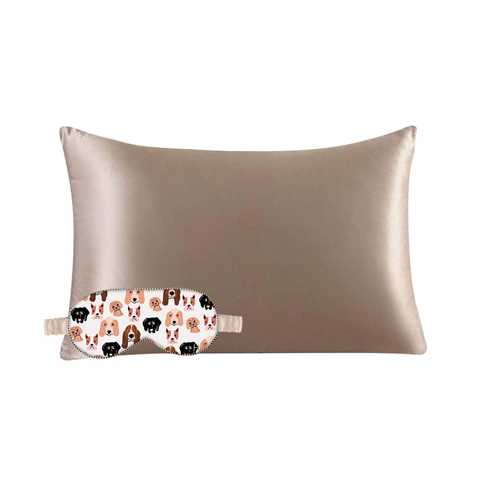 Taupe Pillowcase + Dog Eye Mask Set